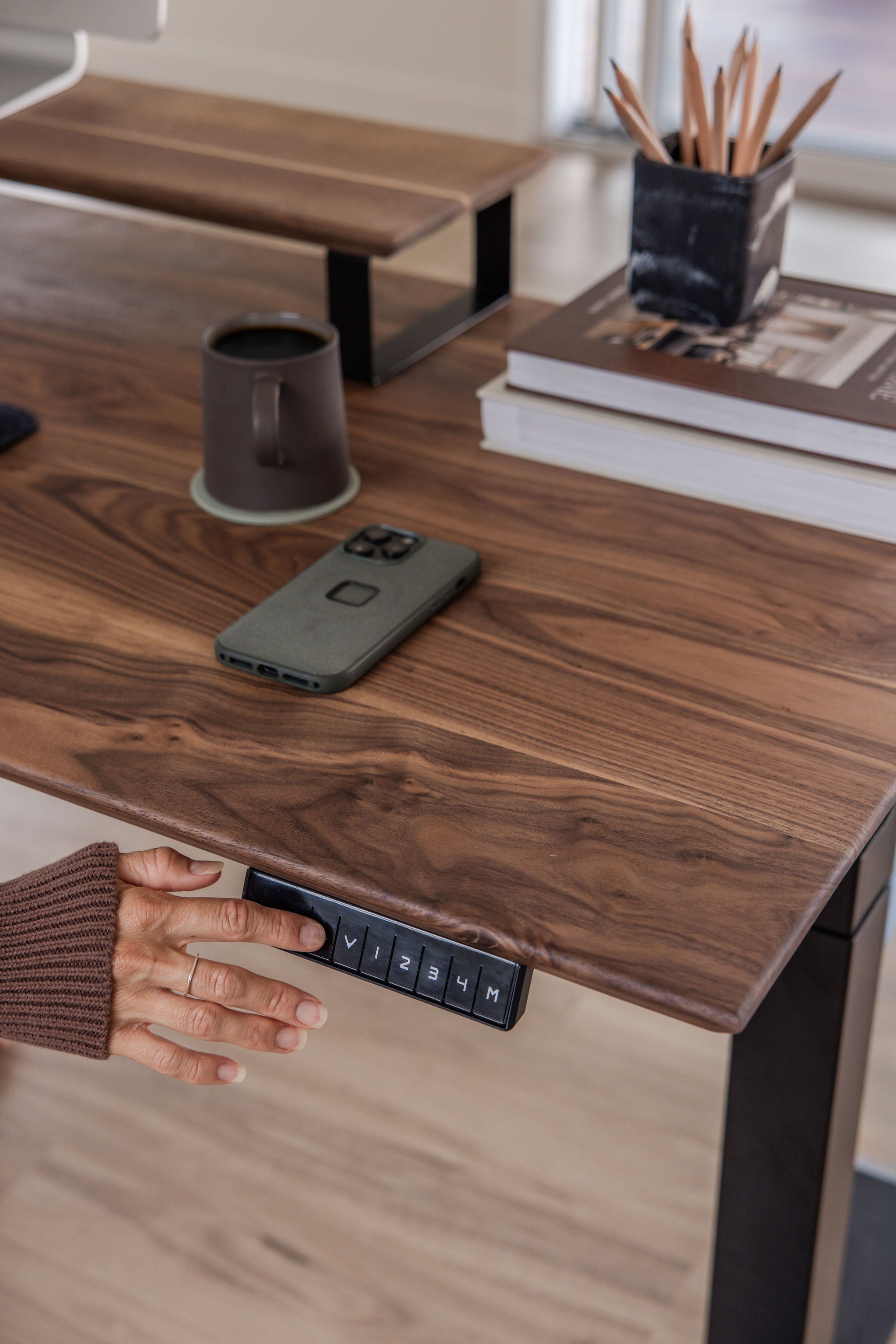 Switching between sitting and standing has never been easier. Our desks feature a smooth and quick height adjustment system, allowing you to find your perfect working position in seconds. With four customizable height presets, you can save your preferred settings for ultimate convenience. Whether you're focused on a project or taking a break to stretch, our desks adapt to your needs at the touch of a button.